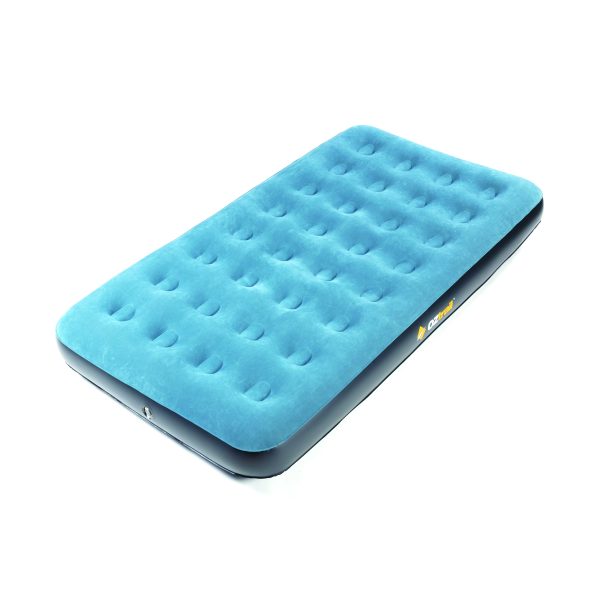 This King Single air bed is great for home or camping use. It features a dual-lock push valve for easy inflation/deflation and air support coil construction for comfort. Soft velour surface adds extra luxury.