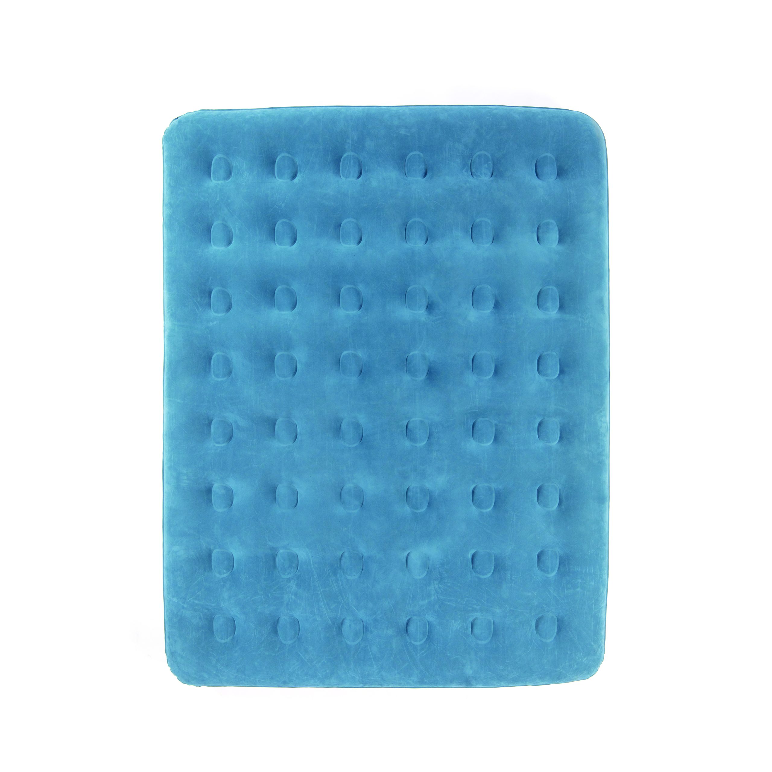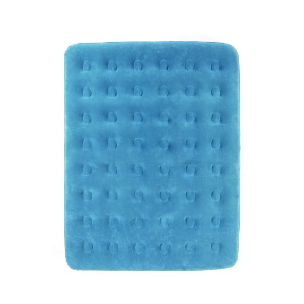 This Queen air bed is designed for camping or home use. It features a dual-lock push valve for easy inflation/deflation and a soft velour surface for comfort. Air support coil construction ensures superior comfort.