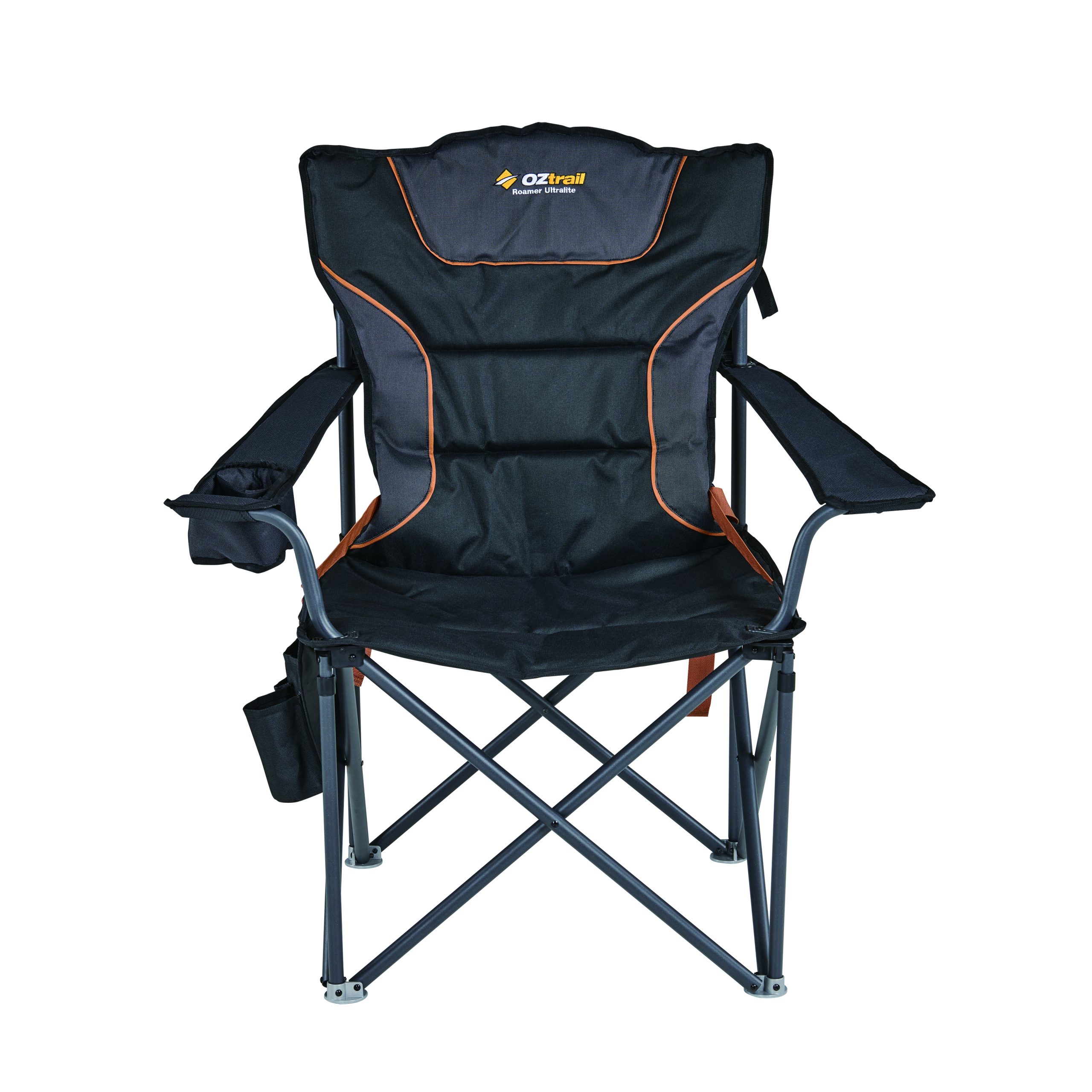 The Roamer Ultralite Chair combines comfort and practicality, ideal for camping, beach trips, and outdoor events. It features a lightweight 22mm aluminum frame and 600D two-tone polyester fabric with a fully padded seat, backrest, and headrest. With integrated lumbar support and a 160KG weight rating, it ensures maximum comfort and durability. Additional features include replaceable alloy feet, a side storage pouch with organiser pockets, an oversized insulated drink holder, and a convenient carry bag with YKK zippers. The chair also comes with a 5-year warranty (2 years + 3 years with product registration) for added peace of mind.